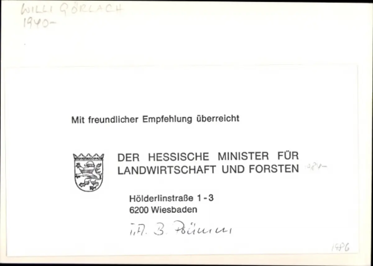 Autogrammkarte Politiker Willi Görlach, Portrait, Autogramm