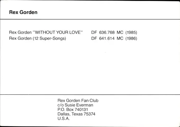 Autogrammkarte Rex Gorden, Autogramm