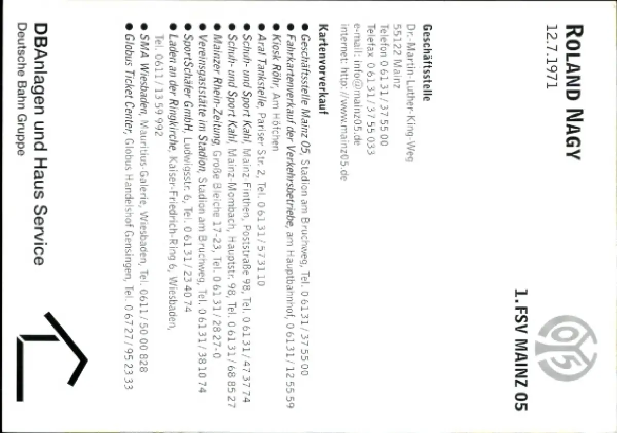 Autogrammkarte Roland Nagy, 1. FSV Mainz 05, Portrait, Autogramm
