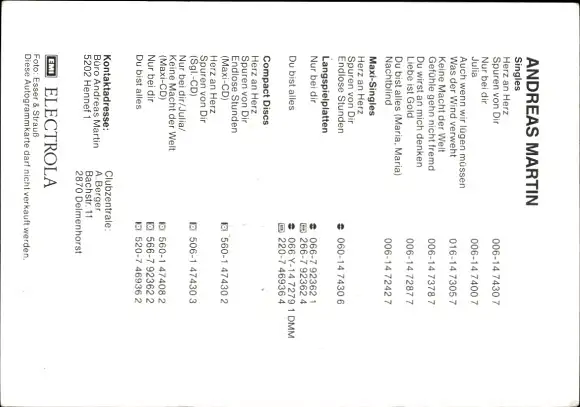 Autogrammkarte Sänger Andreas Martin, Portrait, Autogramm