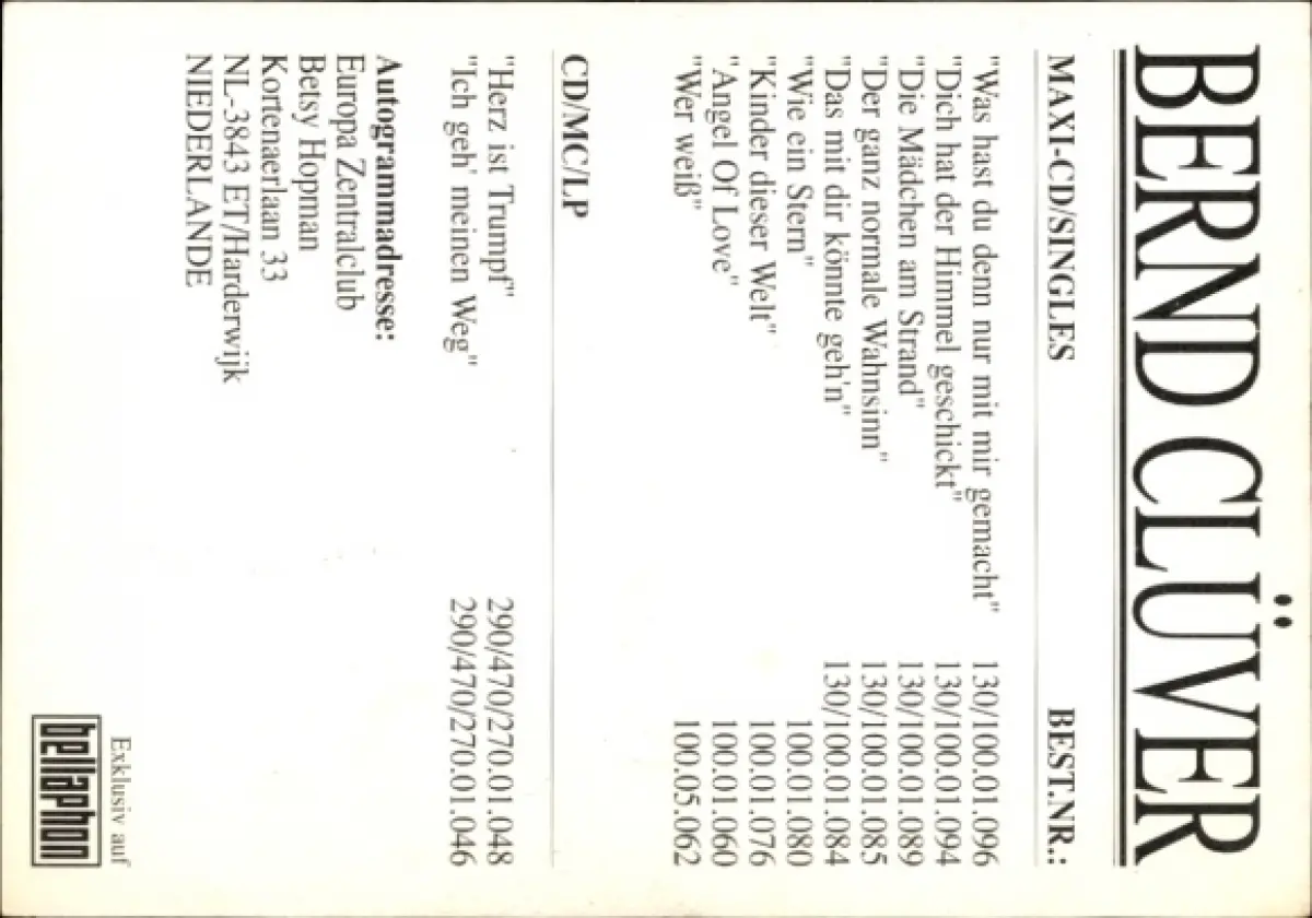 Autogrammkarte Sänger Bernd Clüver, Portrait, Autogramm