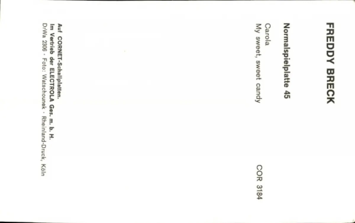 Autogrammkarte Sänger Freddy Breck, Autogramm