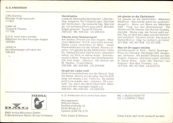 Autogrammkarte Sänger G. G. Anderson, Autogramm