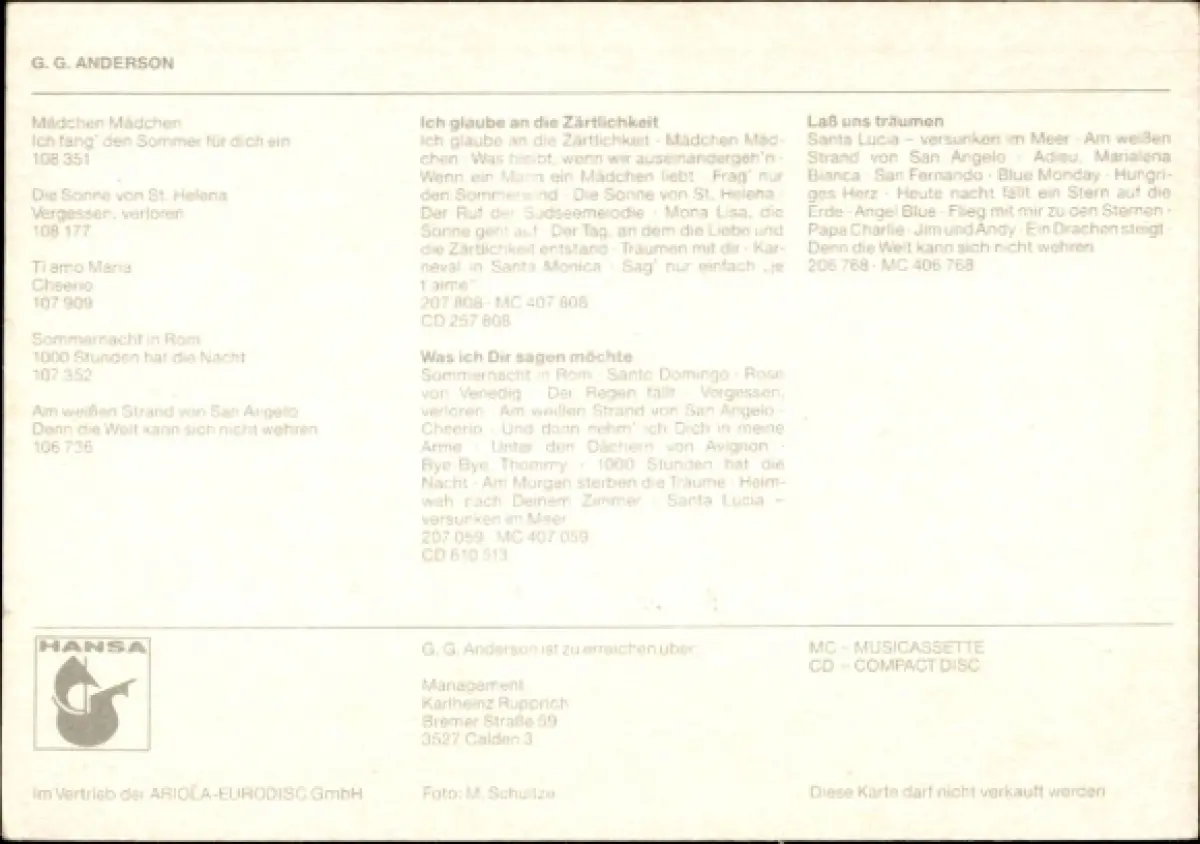 Autogrammkarte Sänger G. G. Anderson, Portrait, Autogramm