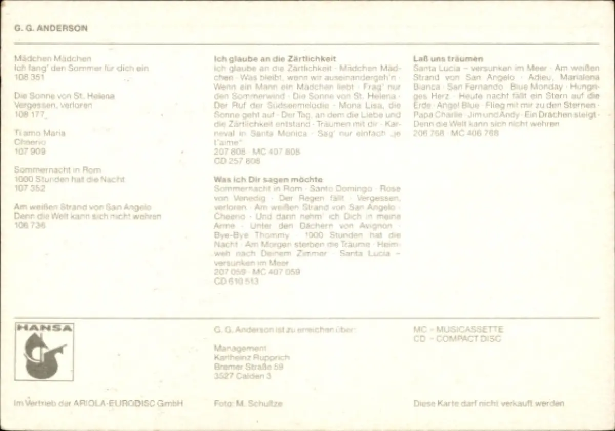 Autogrammkarte Sänger G. G. Anderson, Portrait, Autogramm