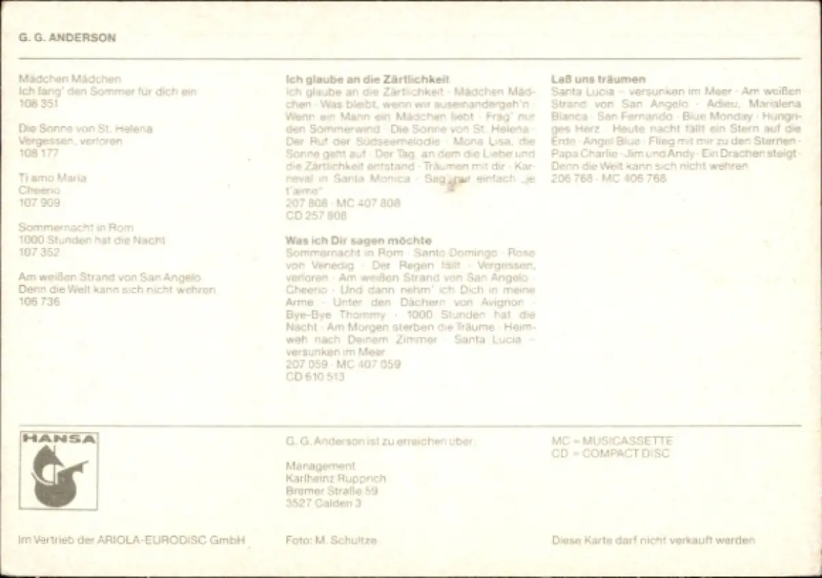 Autogrammkarte Sänger G. G. Anderson, Portrait, Autogramm
