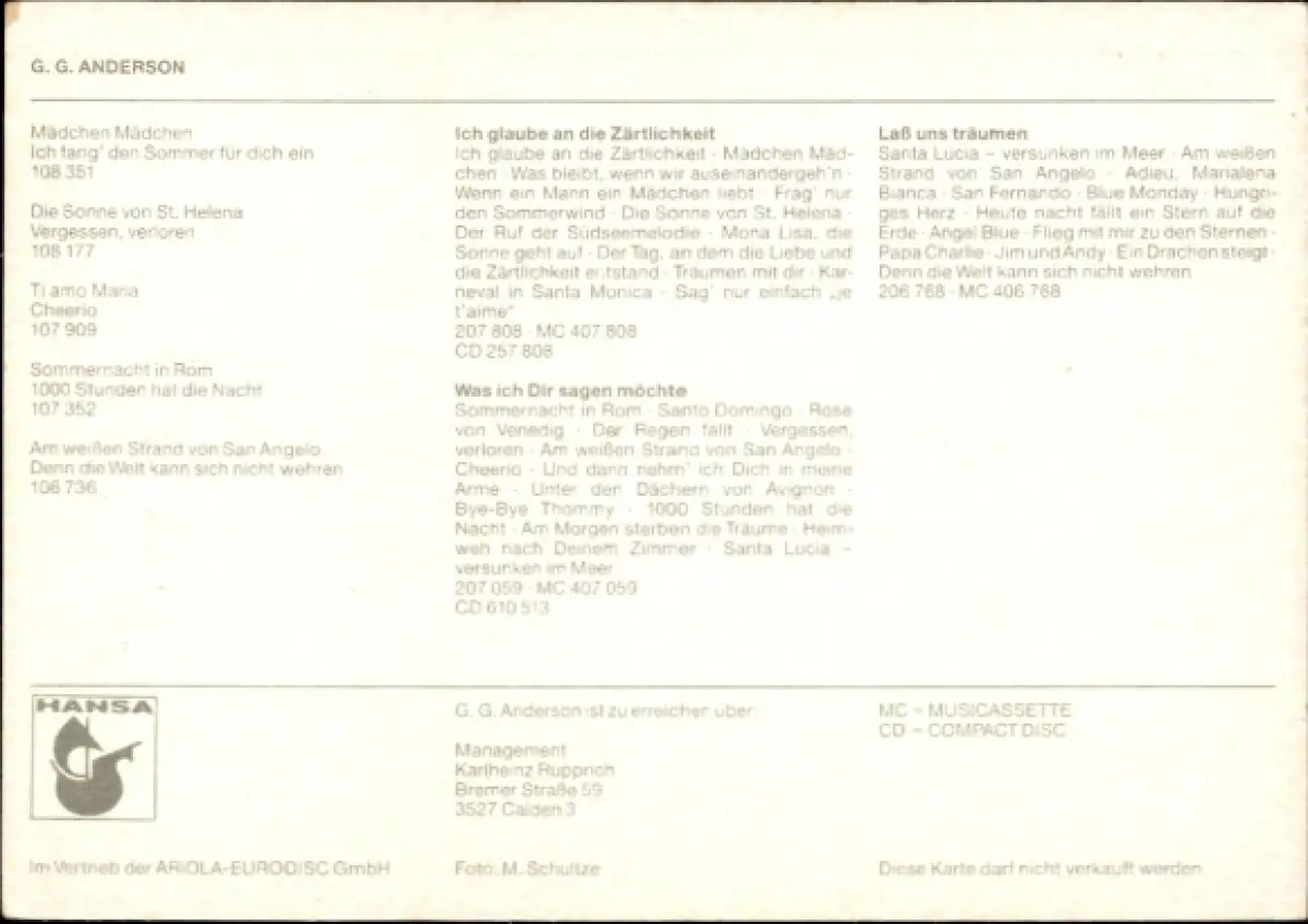 Autogrammkarte Sänger G. G. Anderson, Portrait, Autogramm