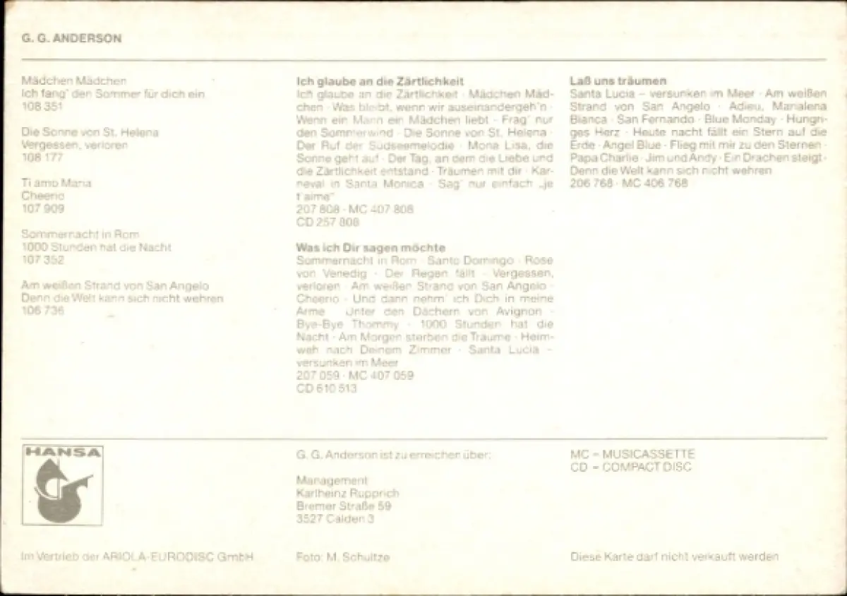 Autogrammkarte Sänger G. G. Anderson, Portrait, Autogramm