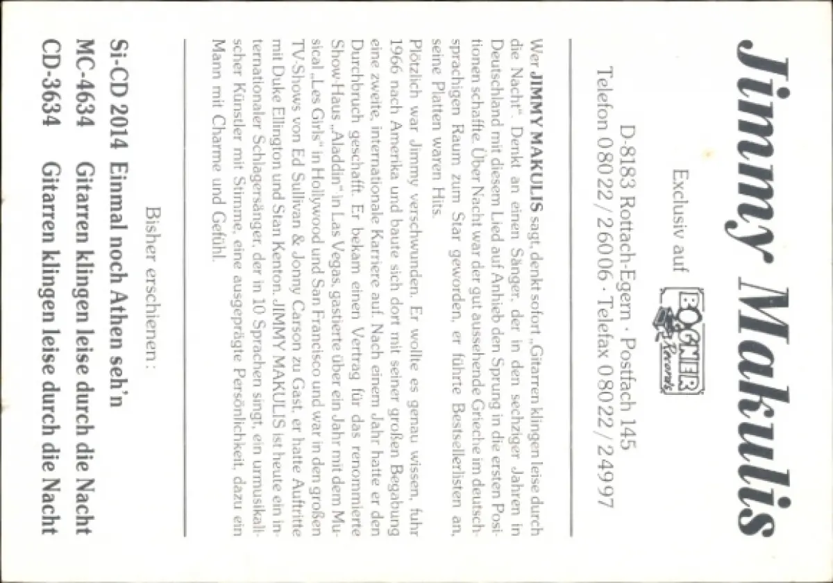 Autogrammkarte Sänger Jimmy Makulis, Portrait, Autogramm