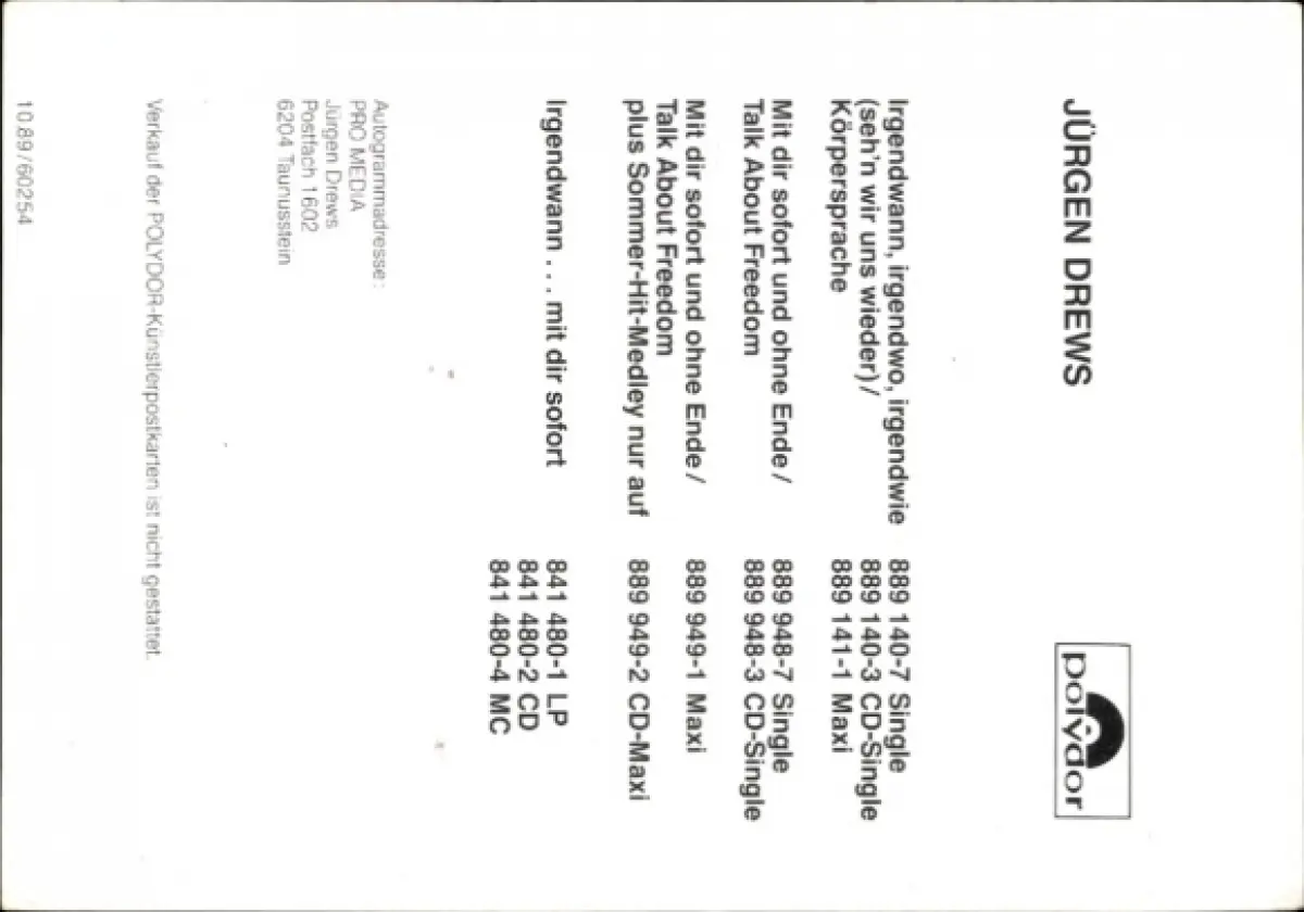 Autogrammkarte Sänger Jürgen Drews, Portrait, Autogramm