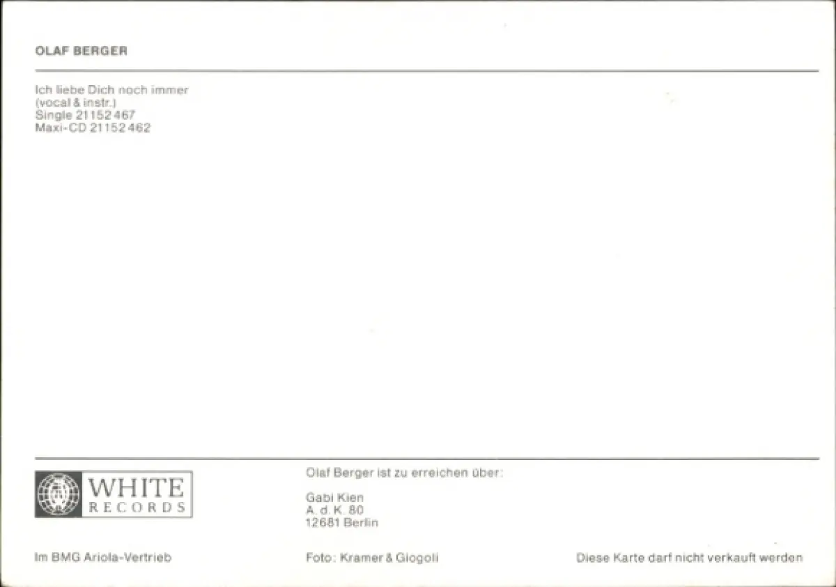 Autogrammkarte Sänger Olaf Berger, Portrait, Autogramm