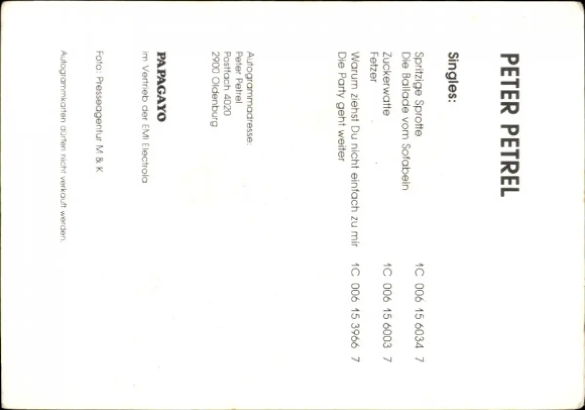 Autogrammkarte Sänger Peter Petrel, Portrait, Autogramm