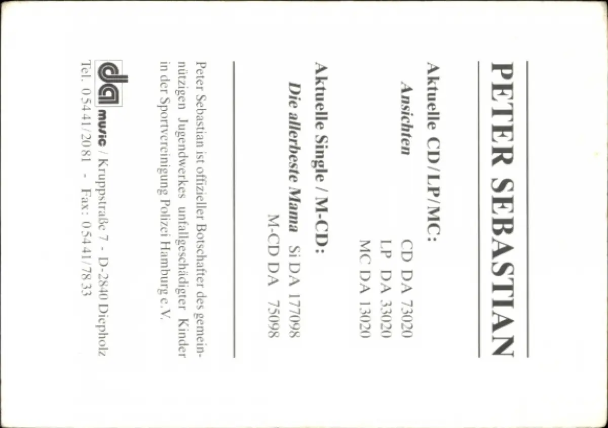 Autogrammkarte Sänger Peter Sebastian, Portrait, Autogramm