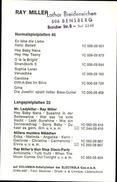 Autogrammkarte Sänger Ray Miller, Portrait, EMI Columbia, signiert