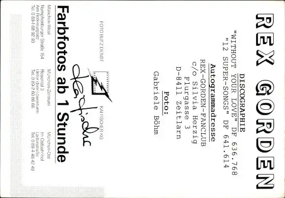 Autogrammkarte Sänger Rex Gorden, Autogramm
