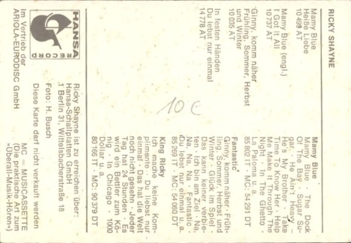 Autogrammkarte Sänger Ricky Shayne