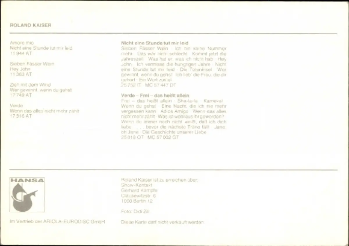 Autogrammkarte Sänger Roland Kaiser, Autogramm