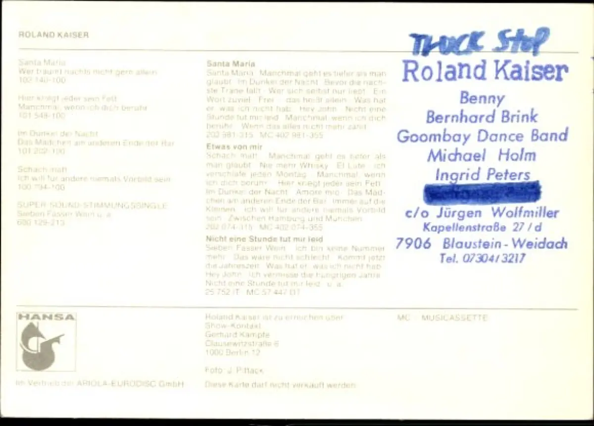 Autogrammkarte Sänger Roland Kaiser, Portrait, Autogramm