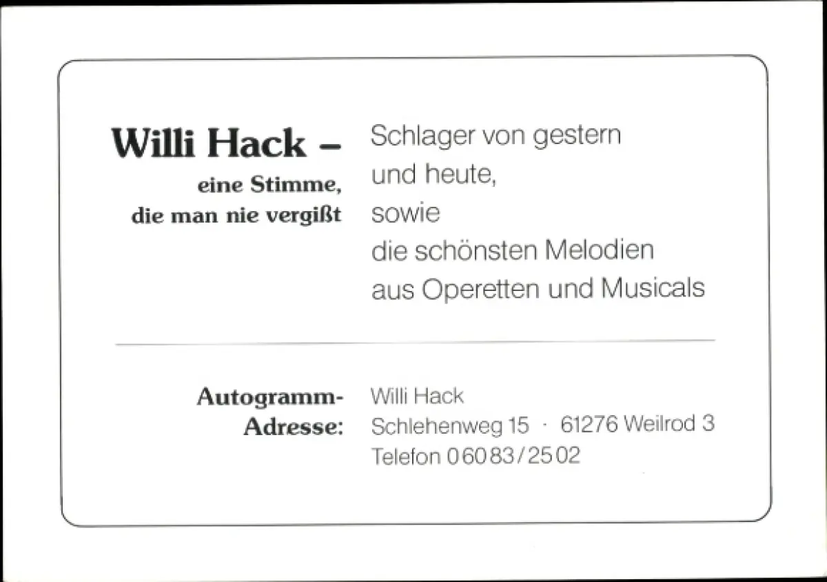 Autogrammkarte Sänger Willi Hack, Portrait, Autogramm