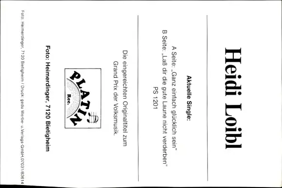 Autogrammkarte Sängerin Heidi Loibl, Portrait, Autogramm