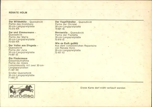 Autogrammkarte Sängerin Renate Holm, Portrait