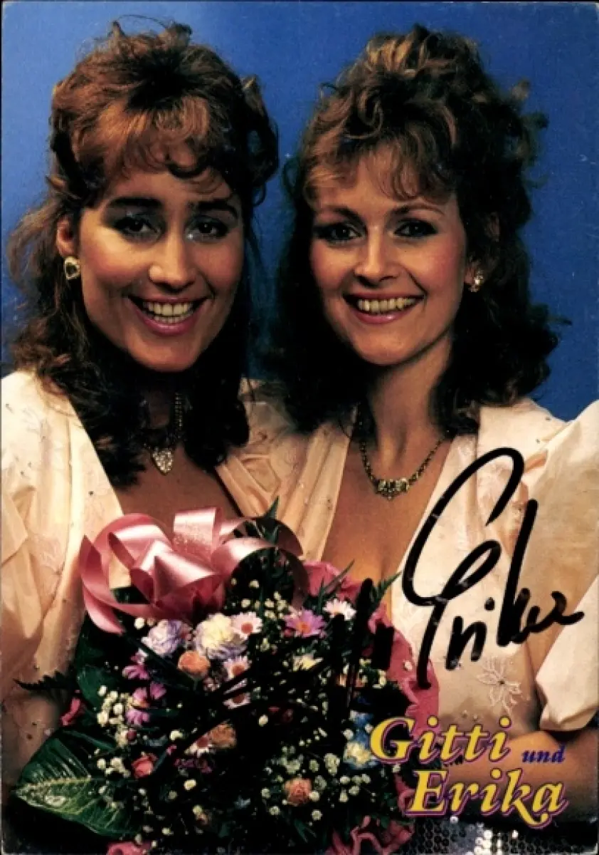 Autogrammkarte Sängerinnen Duo Gitti und Erika, Portrait, Autogramme