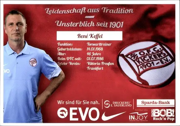Autogrammkarte Torwarttrainer René Keffel, Kickers Offenbach, Autogramm