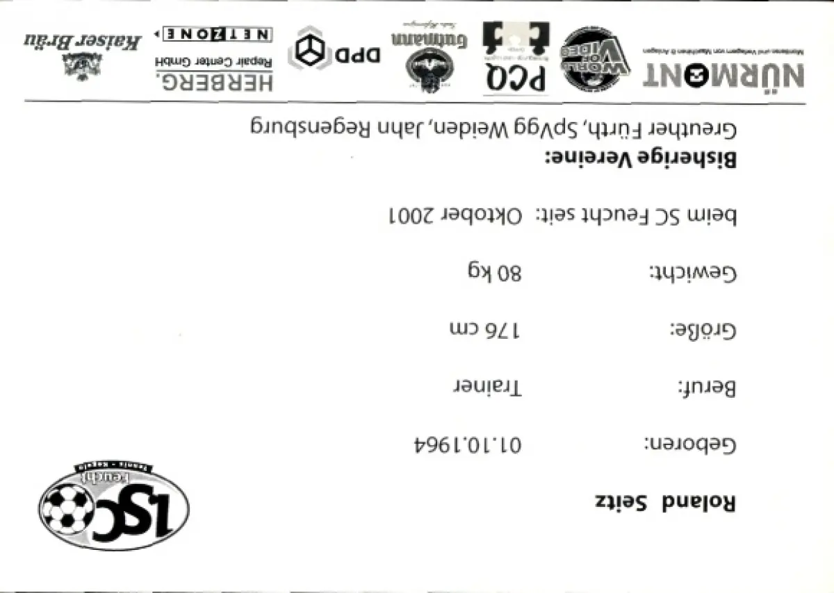 Autogrammkarte Trainer Roland Seitz, 1. SC Feucht, Autogramm