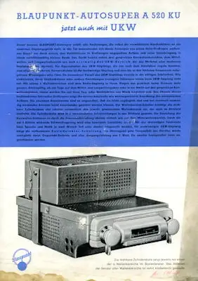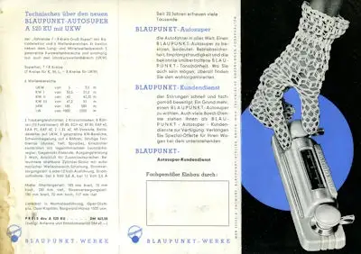 Autoradio Blaupunkt Autosuper Prospekt 1950er Jahre