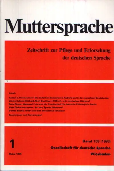 Muttersprache Band 103 Zeitschrift zur Pflege und Erforschung der deutschen Sprache