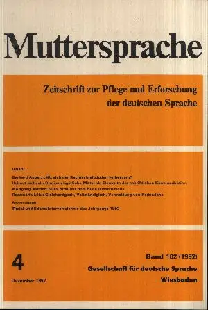 Muttersprache Band 102 Zeitschrift zur Pflege und Erforschung der deutschen Sprache