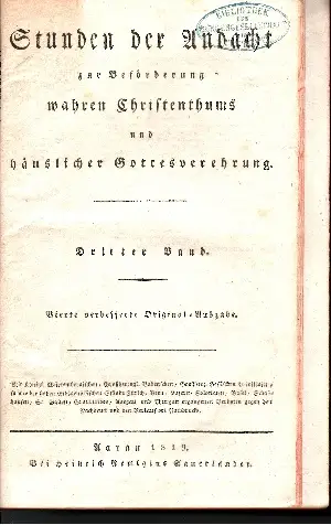 Stunden der Andacht zur Beförderung wahren Christenthums und häuslicher Gottesverehrung; Religion