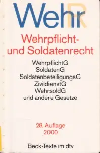 Bibliotheksexemplar mit Stempel und Rückständen, aus dem Inhalt: Abkürzungsverzeichnis - Einfuhrung von Wolfgang Boehm-Tettelbach, Vizepräsident des Bundesamtes für Wehrverwaltung a. D. - Gesetzestexte: 1. Grundgesetz für die Bundesrepubhk Deutschland vom 23. Mai 1949 (Auszug) - 2. Wehrpflichtgesetz i. d. F. der Bek. vom 15. Dezember 1995 - 2 a. Musterungsverordnung i. d. F. der Bek. vom 16. Dezember 1983 - 2 b. Verordnung über die Zuständigkeit und das Verfahren bei der Unabkömmlichstellung (UkV) vom 24. Juli 1962 - 3. Gesetz zur Neuordnung des Rechts der Kriegsdienstverweigerung und des Zivildienstes (Kriegsdienstverweigerungsgesetz - KDVG) vom 28. Februar 1983 - 3 a Verordnung über das Anerkennungsverfahren nach dem Dritten Abschnitt des Kriegsdienstverweigerungsgesetzes (Kriegsdienstverweigerungsverordnung - KDVV) vom 2. Januar 1984 - 4. Gesetz über die Rechtsstellung der Soldaten (Soldatengesetz) i.d. F. der Bek. vom 15. Dezember 1995 - 4 a. Soldatenbeteiligungsgesetz (SBG) i. d. F. der Bek. vom 15. April 1997 - 5. Gesetz über den Zivildienst der Kriegsdienstverweigerer (Zivildienstgesetz - ZDG) i. d. F. der Bek. vom 28. September 1994 - 5a. Gesetz über den Vertrauensmann der Zivildienstleistenden (Zivildienstvertrauensmann-Gesetz - ZDVG) vom 16. Januar 1991 - 6. Verordnung über die Regelung des militärischen Vorgesetztenverhältnisses (Vorgesetztenverordnung - VorgV) vom 4. Juni 1956 - 7. Verordnung über die Laufbahnen der Soldaten (SoldatenlaufbahnVerordnung - SLV) i. d. F. der Bek. vom 28. Januar 1998 - S.Verordnung über den Urlaub der Soldaten (Soldatenurlaubsverordnung - SUV) i. d. F. der Bek. vom 14. Mai 1997 - 9. Verordnung über den Erholungsurlaub der Bundesbeamten und Richter im Bundesdienst (Erholungsurlaubsverordnung - EUrlV) i.d.F. der Bek. vom 25. April 1997 - 9 a. Verordnung über Sonderurlaub für Bundesbeamte und Richter im Bundesdienst (Sonderurlaubsverordnung - SUrlV) i.d.F. der Bek. vom 25. April 1997 - 10. Gesetz über die Geld- und Sachbezüge der Soldaten, die auf Grund der Wehrpfhcht Wehrdienst leisten (Wehrsoldgesetz - WSG) i. d. F. der Bek. vom 24. Januar 1996 - 10 a. Verordnung über den erhöhten Wehrsold für Soldaten mit besonderer zeitHcher Belelastung vom 2. Juni 1989 - 11. Gesetz über den Schutz des Arbeitsplatzes bei Einberufung zum Wehrdienst (Arbeitsplatzschutzgesetz) i.d.F. vom 14. April 1980 - 12. Gesetz über die Sicherung des Unterhalts der zum Wehrdienst einberufenen Wehrpflichtigen und ihrer Angehörigen (Unterhaltssicherungsgesetz - USG) i.d.F. der Bek. vom 14. Dezember 1987 - 13. Wehrbeschwerdeordnung i.d.F. der Bek. vom 11. September 1972 - 14. Einführungsgesetz zum Wehrstrafgesetz vom 30. März 1957 - 15. Wehrstrafgesetz (WStG) i.d.F. der Bek. vom 24. Mai 1974 - 16. Wehrdisziplinarordnung i.d.F. der Bek. vom 4. September 1972 - 17. Verordnung über den Vollzug von Freiheitsstrafe, Strafarrest, Jugendarrest und Diszipplinararrest durch Behörden der Bundeswehr Bundeswehrvollzugsordnung (BwVollzO) - vom 29. November 1972 - 18. Gesetz über den Wehrbeauftragten des Deutschen Bundestages (Gesetz zu Artikel 45 b des Grundgesetzes - WBeauftrG) vom 16. Juni 1982 - 19. Gesetz über die Anwendung unmittelbaren Zwanges und die Ausübung besonderer Befugnisse durch Soldaten der Bundeswehr und verbündeter Streitkräfte sowie zivile Wachpersonen (UzwGBw) vom 12. August 1965 - Sachverzeichnis Beschreibung vom Antiquariat Ardelt 4b5a ISBN-Nummer: 3423050128 Antiquariat Ardelt