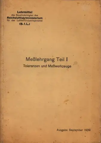 Meßlehrgang Teil 1: Toleranzen und Meßwerkzeuge Ausgabe Sepßember 1939