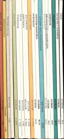 Merian; Städte; Wien, Warschau; Polen; Augsburg; Budapest; Kopenhagen; Dänemark; Leningrad; Hongkong; Macao; Schleswig-Holstein; Esslingen; Dalmatien; Finnland; Provence; Südtirol; Tübingen; Mecklenburg; Südschweden; Die Bretagne; Landeskunde; Geografie; Städtekunde