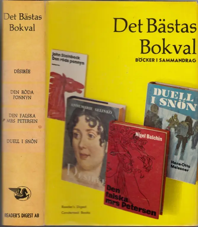 Det bästas Bokval; Geschichten; Erzählungen; Diseirée; Annemarie Selinko; Den Röda Ponnyn; John Steinbeck; Den Falska Mrs. Petersen; Nigel Balchin; Duell i Snön; Hans-Otto Meissner