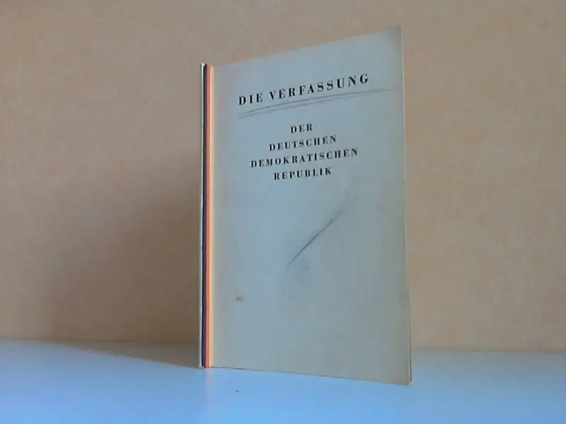 der Einband und die Seiten sind gebräunt und fleckig, vorn auf dem Einband wurde gemalt, Die Verfassung ist das Grundgesetz jeder Staats- und Gesellschaftsordnung; sie bildet die rechtliche Grundlage für das Leben des gesamten Volkes. Was liegt also näher, als daß sich das Volk selbst die Grundlage der Staatsordnung schafft, in der es leben will. Dieses große demokratische Prinzip der Selbstbestimmung des Volkes ist bei der Schaffung der Verfassung der Deutschen Demokratischen Republik in so hohem Maße verwirklidit worden, wie es bisher in der Geschichte der Völker nur selten geschehen ist ... (aus dem Buch) Beschreibung vom Antiquariat Ardelt 3j5b Antiquariat Ardelt