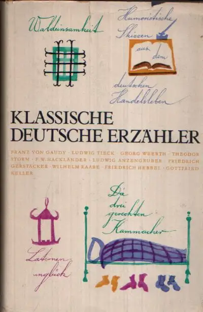Autorenkollektiv; Klassische Deutsche Erzähler; Rede am Grabe des Musketiers Gottfried Gröbel; Waldeinsamkeit; Humoristische Skizzen aus dem deutschen Handelsleben; Ein grünes Blatt; Laternenunglück; Die drei gerechten Kammacher; Eine Nacht im Jägerhause; Die Flucht über die Kordilleren; Die schwarze Galeere; Die Märchen des Steinklopfhans; Kurze Lebensabriß der Dichter; Register; Erzählungen; Geschichten; Roman