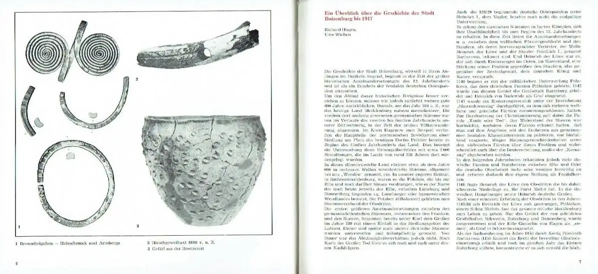 sehr guter Zustand, geringe Gebrauchs- und Alterungsspuren: Schutzumschlag gering defekt, Auflage nur 5000 Exemplare "Unsere Heimatstadt hat in den letzten dreißig Jahren des sozialistischen Aufbaus einen gewaltigen Sprung in ihrer Entwicklung gemacht. Von einer Ackerbürgerstadt entwickelte sich Boizenburg zu einer bedeutsamen Industriestadt im Bezirk Schwerin, in der die Arbeiterklasse auf große revolutionäre Traditionen zurückschauen kann. Volkseigene Betriebe mit einem wichtigen Produktionsprogramm, wie keramische Wandfliesen, Binnenfahrgastschiffe und Raumerweiterungshallen prägen das Gesicht der Stadt. Das Wachsen dieser Betriebe in den letzten Jahren ist in allen Sphären des gesellschaftlichen Lebens und der Freizeitgestaltung spürbar. Eine enge Zusammenarbeit zwischen den Betrieben des Territoriums, dem Stadtausschuß der Nationalen Front und dem Rat der Stadt unter Führung der Ortsleitung der SED schafften günstige Voraussetzungen, daß Boizenburg sich immer mehr als sozialistisches Siedlungszentrum entwickelte. Moderne Wohnungen mit Fernheizung und einem hohen Wohnkomfort errichteten die Bauarbeiter für die Werktätigen. Mit dem Baubeginn des komplexen Wohnungsbaues am Schwartower Steig wird ein weiterer Beitrag zur Verbesserung der Arbeits- und Lebensbedingungen geschaffen. Kinderkrippen und Kindergärten stehen in ausreichender Anzahl zur Verfügung. Im Mach-mit-Wettbewerb wurden viele Einrichtungen wie Schwimmbad „An der Boize", Jugendklub, Minigolfanlage, Ferienzentrum, Naherholungszentrum des VKSK in der Stadt geschaffen. Die beiden Betriebssportgemeinschaften „Motor" und „Aufbau" erfassen immer mehr Bürger im Leistungs- und Freizeitsport. Nicht zuletzt hat die 1976 fertiggestellte Sporthalle „Richard Schwenk" dazu geführt, daß sich„ solche Sportarten wie Hand- und Volleyball einen großen Teilnehmerkreis erworben haben. Das kulturelle Leben unserer Stadt wird von beiden betriebseigenen Kulturhäusern und den Jugendklubs aktiv beeinflußt. So haben die Boizenburger in den dreißig Jahren des Bestehens der DDR viele Bausteine des Sozialismus in ihrer Stadt geschaffen, die von ihrem aktiven Mitgestalten Zeugnis ablegen. Das fand seine Anerkennung durch die 1972 der Stadt verliehene Ehrenurkunde des Nationalrates der Nationalen Front und durch die 1974 erfolgte hohe Auszeichnung mit dem Vaterländischen Verdienstorden in Bronze. Die Werktätigen der Stadt Boizenburg bringen mit ihren Leistungen einen großen Beitrag zur Erfüllung der Pläne und zur Durchsetzung der auf das Wohl des Volkes der DDR gerichteten Politik der SED. Beim Besuch unserer Stadt möge dieses Buch einen kleinen Einblick in ihre über 700jährige Geschichte geben und gleichzeitig als Bindeglied der alten Stadtgeschichte mit der sozialistischen Entwicklung dienen.", Leinen, ca. 21,5 x 19,5, 83 Seiten mit 40 Bildern