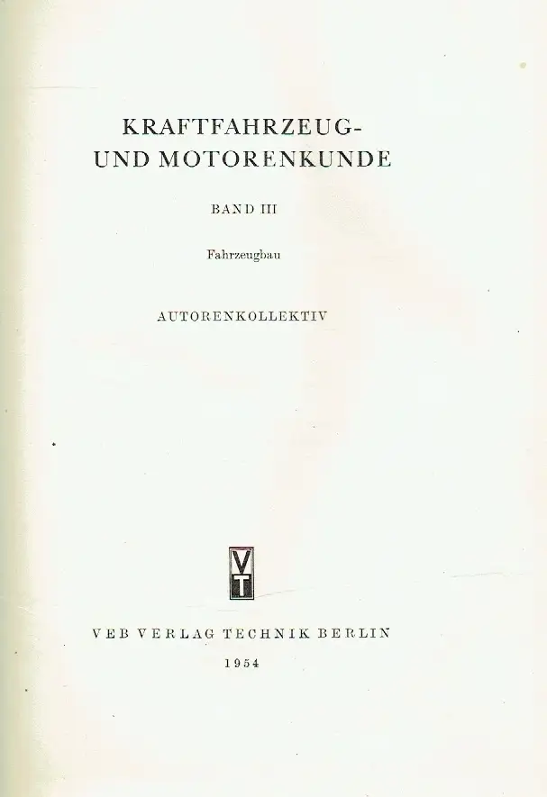 guter bis sehr guter Zustand, geringe Gebrauchs- und Alterungsspuren: Einband leicht verschmutzt und teils etwas vergilbt (Rücken) - Papier teils etwas vergilbt, aber Seiten sauber und ordentlich, Das Werk „Kraftfahrzeug- und Motorenkunde umfaßt erstmalig in konstruktiver und technischer Hinsicht die gesamten Probleme der Kraftfahrzeugtechnik, wie sie der Ingenieur mit abgeschlossener Fachbildung beherrschen muß. Die vorhandene kraftfahrzeugtechnische Literatur enthält bisher entweder nur Teilausschnitte der einzelnen Wissensgebiete oder aber behandelt die Gesamtmaterie unvollkommen. Mit diesem Werk, das in fünf in sich abgeschlossene Bände gegliedert ist, sollen insbesondere dem Kfz.-Ingenieur, dem Entwicklungsingenieur und dem Konstrukteur die Unterlagen in die Hand gegeben werden, die bisher in der technischen Literatur nicht vorhanden waren. Insbesondere werden den Studierenden der Hoch- und Fachschulen mit dem Werk all die Unterlagen zur Verfügung gestellt, die sie für ihr Studium benötigen. Der umfangreiche Inhalt des Gesamtwerkes machte eine Aufgliederung in fünf in sich abgeschlossene Bände notwendig, um das Buch einesteils nicht zu unhandlich zu gestalten und andererseits die einzelnen Fachgebiete besser abzugrenzen. Besonderer Wert wurde auf eine eingehende Darstellung der Fachgebiete gelegt. Es sind nicht nur die Endgleichungen wiedergegeben, sondern, je nach der Wichtigkeit des Inhalts, die Gleichungen bis zur Grundgleichung teilweise abgeleitet. Dadurch wird dem Studierenden ein umfassenderes Studium und ein schnelleres Verständnis ermöglicht. Dem Ingenieur der Praxis, dem Entwicklungsingenieur und dem Konstrukteur wird die Kontrolle seiner Arbeiten erleichtert. Das umfangreiche Bildmaterial ist speziell für den Ingenieur der Praxis gedacht. Das Gesamtwerk umfaßt mit seinen fünf Bänden über 3600 Seiten und mehr als 2500 Abbildungen, die thematisch untergliedert wurden. Es wurde absichtlich von dem Charakter eines Nachschlagwerkes abgesehen und in allererster Linie Wert auf konkrete Darstellungsweise gelegt, so daß erstmalig auf dem Gebiet der Kraftfahrzeugtechnik eine Arbeit entstand, die nicht nur Lehrbuch, sondern unseren Konstrukteuren und Ingenieuren der Praxis auch ständiger Begleiter und Ratgeber sein soll." - Theoretische Grundlagen - Kraftfahrtmechanik - Fahrwerk - Antriebsübersetzung - Die Fahrt und ihre Darstellung - Schwingung des KFZ - Aerodynamik - Bauteile - Werkstoffe - Wälzlager - Zahnräder - Das Fahrgestell - Rahmen - Radaufhängung - Bremsen - Lenkung - Dämpfung - Räder - Reifen - Aufbauten, Leinen, ca. 18 x 24, 806 Seiten mit zahlreichen Bildern