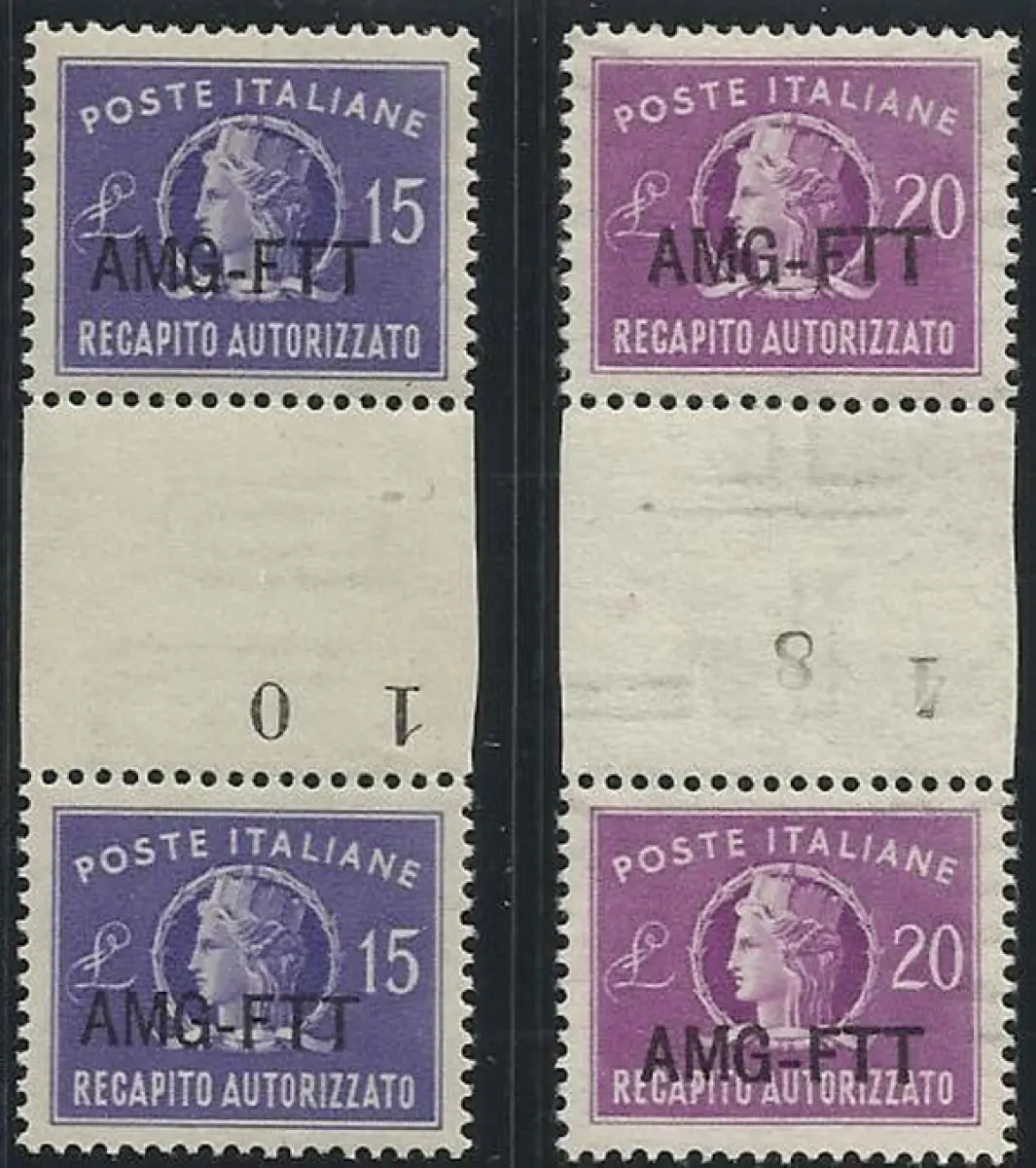 Vollgummi - Autorisierte Lieferung Lire 15 und 20 n. 4/5 in Paaren getrennt in der Mitte durch Gruppenzwischenraum - Ungewöhnlich Code Nr. 680/4