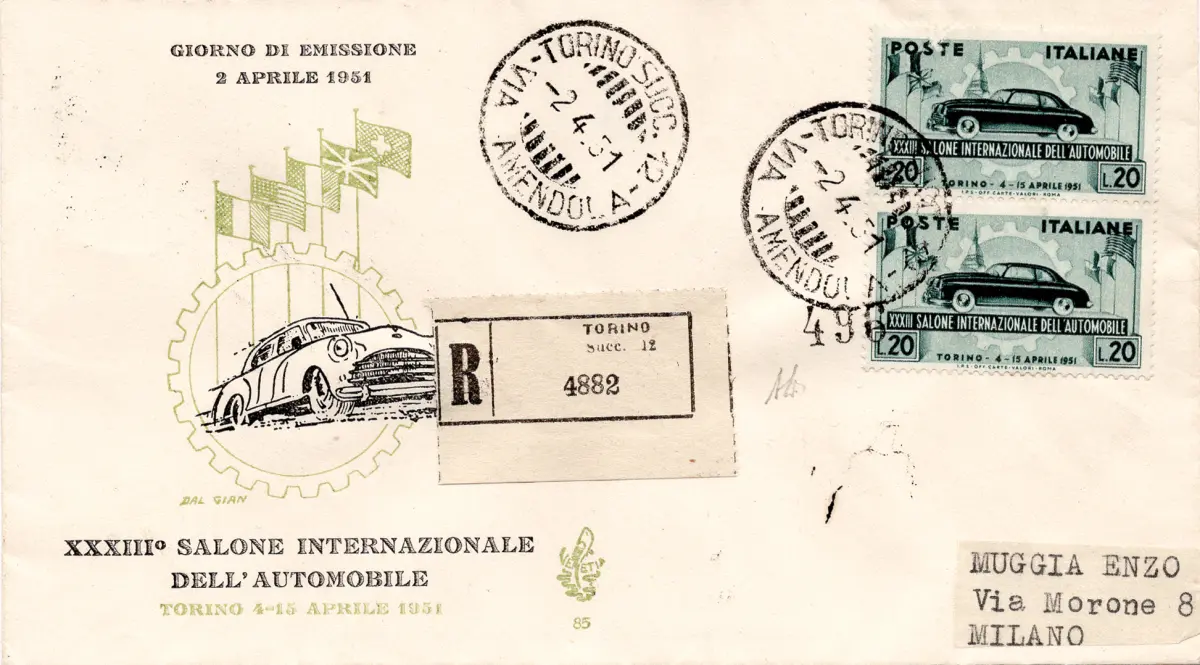 Umschlag - Autosalon Nr. 655 Paar auf Umschlag Racc. für Mailand mit Annullierung der Ankunft - AD Cod. 465/17