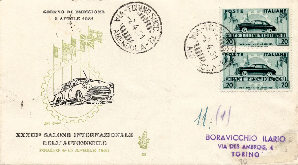 TASCHE - Autosalon Nr. 655 Paar auf Einschreiben für Turin mit Ankunftsstornierung - Nummer mit Stift auf Umschlag Cod.498/182