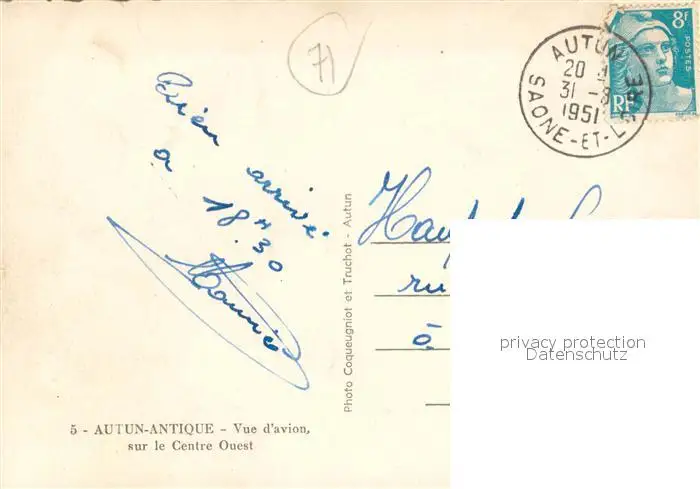 Autun Vue d'avion sur le Centre Ouest de la ville antique Autun postalisch gelaufen 1951 Erhaltung siehe scans [FriedD77] Frierer
