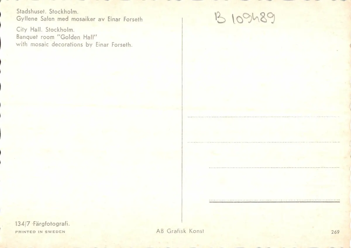 B109489 Schweden Stadshuset Stockholm Rathaus Bankettsaal Goldener Saal