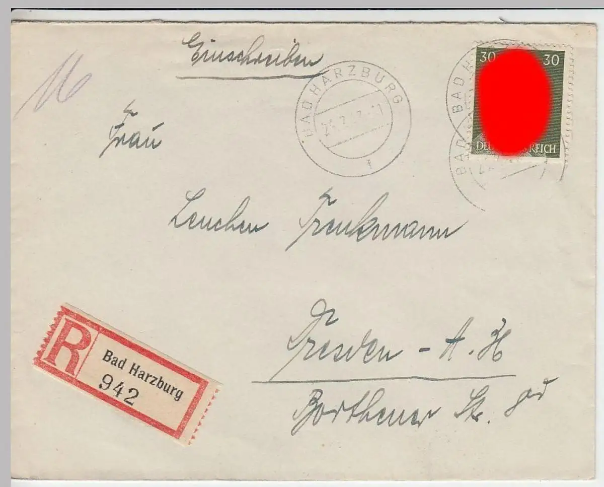 - (B1232) Bedarfsbrief DR, R-Brief, Stempel Bad Harzburg, 1943