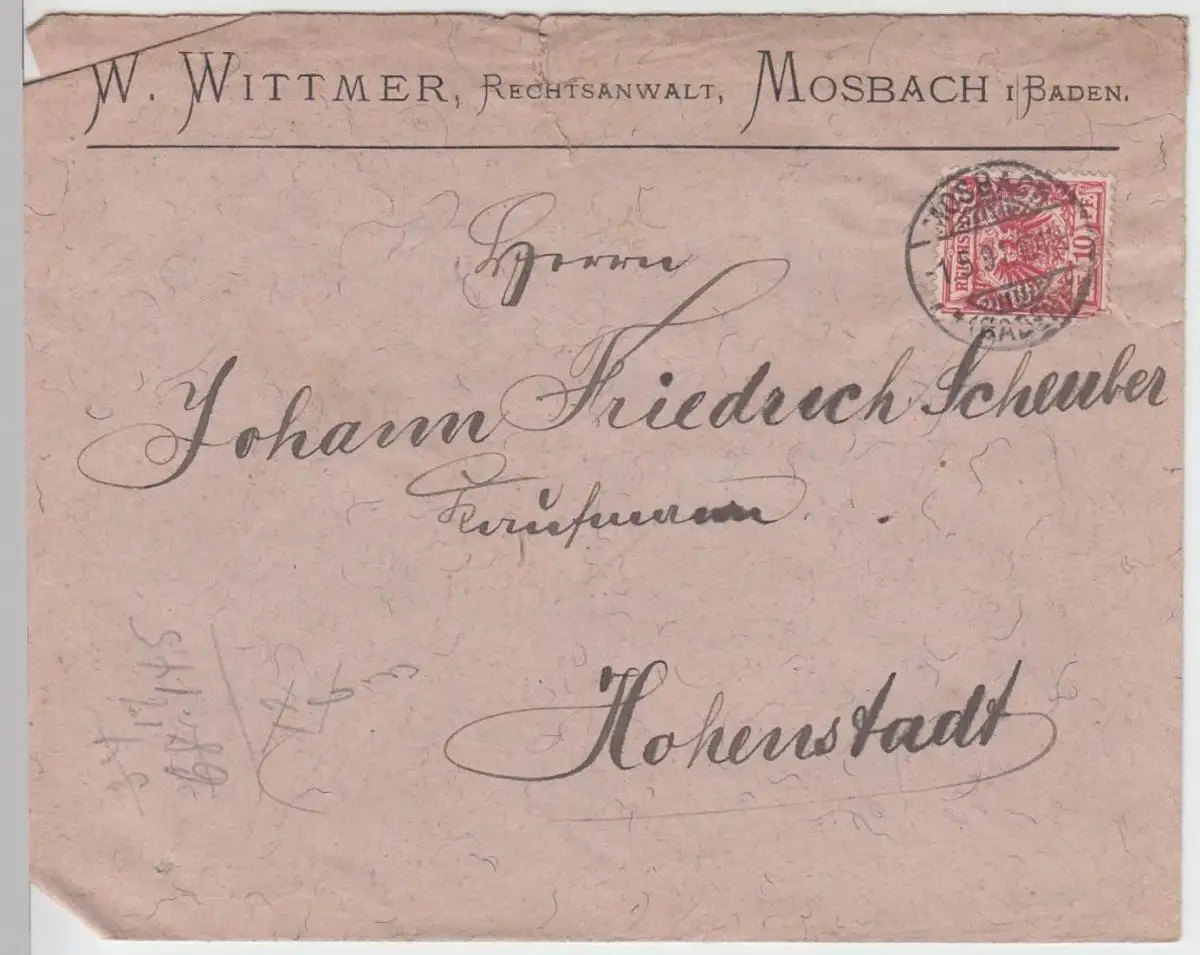 - (B1830) Bedarfsbrief Reichspost, Stempel Mosbach 1891