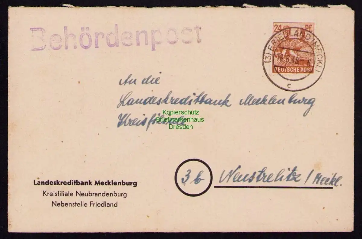 aus der Korrespondenz an die Deutsche Notenbank Neustrelitz ; Geschäftspost Zahlungsverkehr