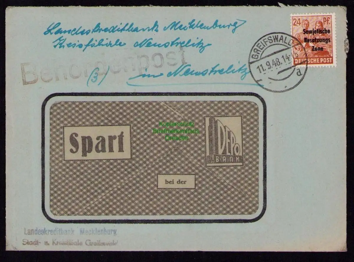 aus der Korrespondenz an die Deutsche Notenbank Neustrelitz ; Geschäftspost Zahlungsverkehr