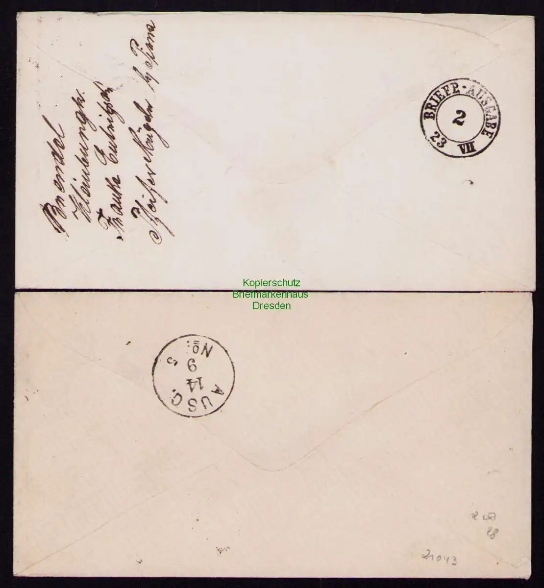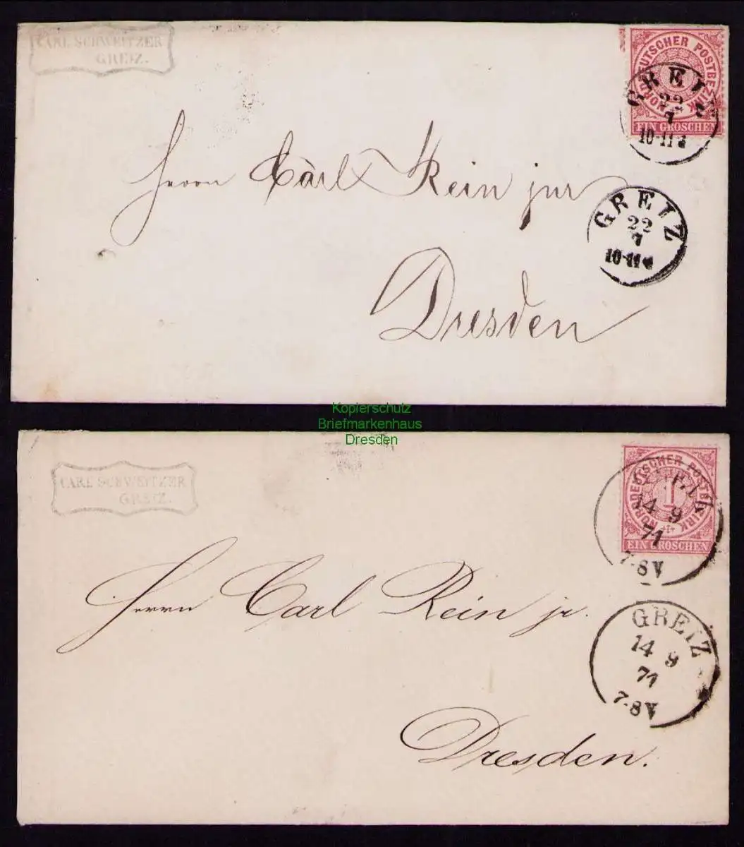 B21043 2x Brief NDP Greiz 1871 nach Dresden 1x Fingerhutstempel